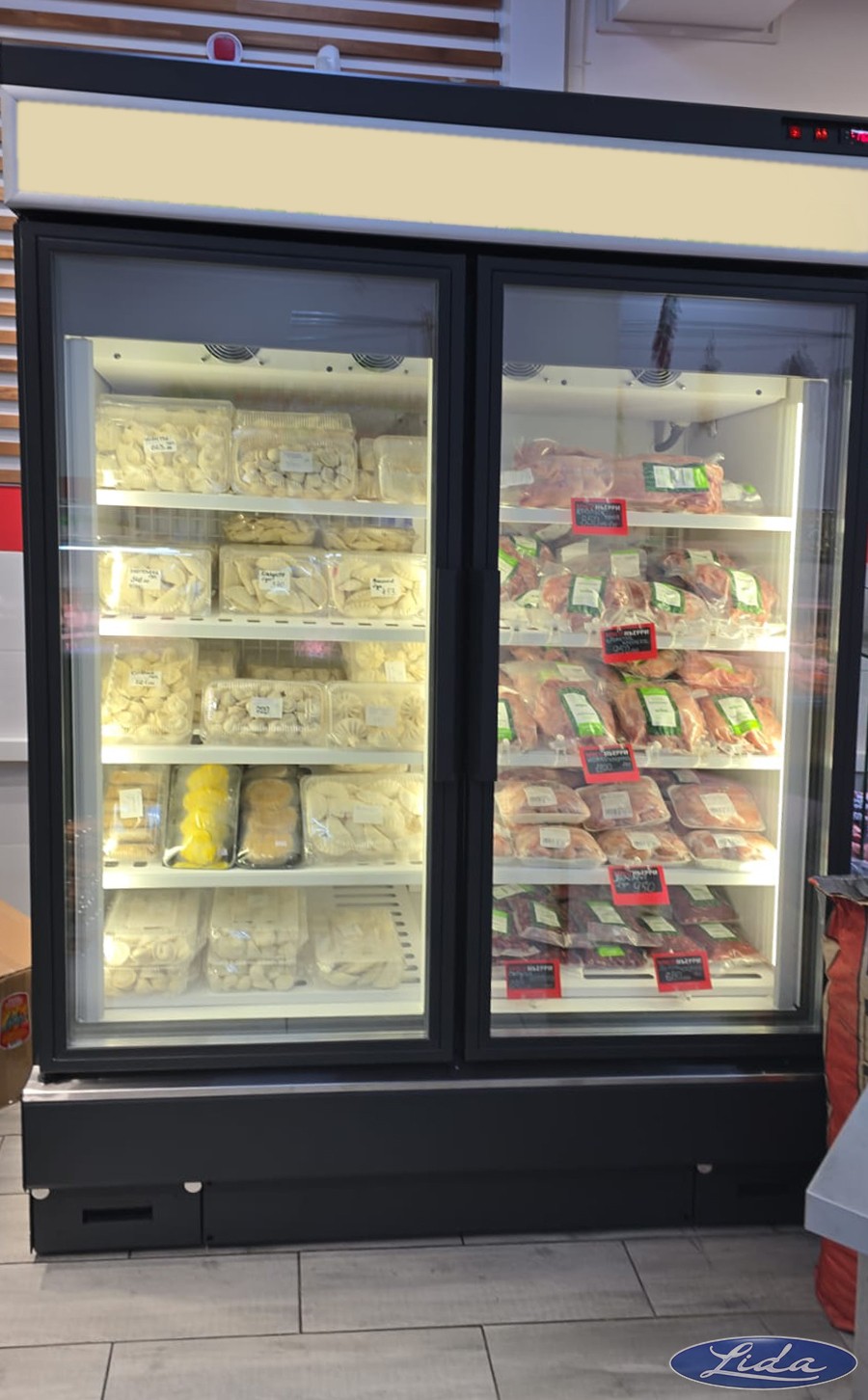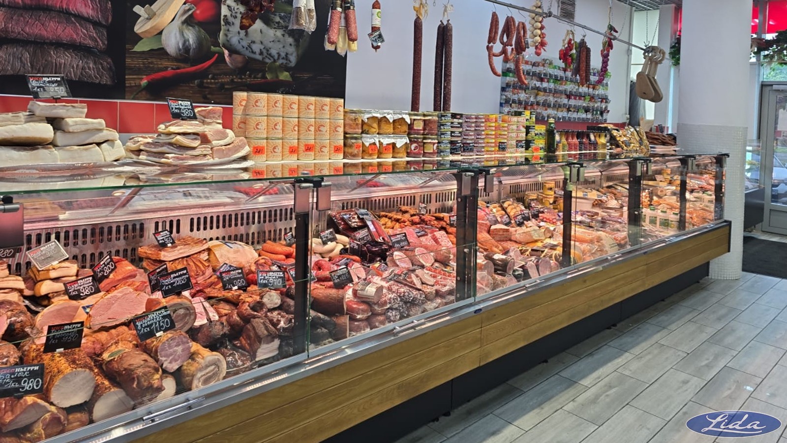 - шкаф низкотемпературный с верхней подсветкой и возможностью размещения логотипа мясного магазина;