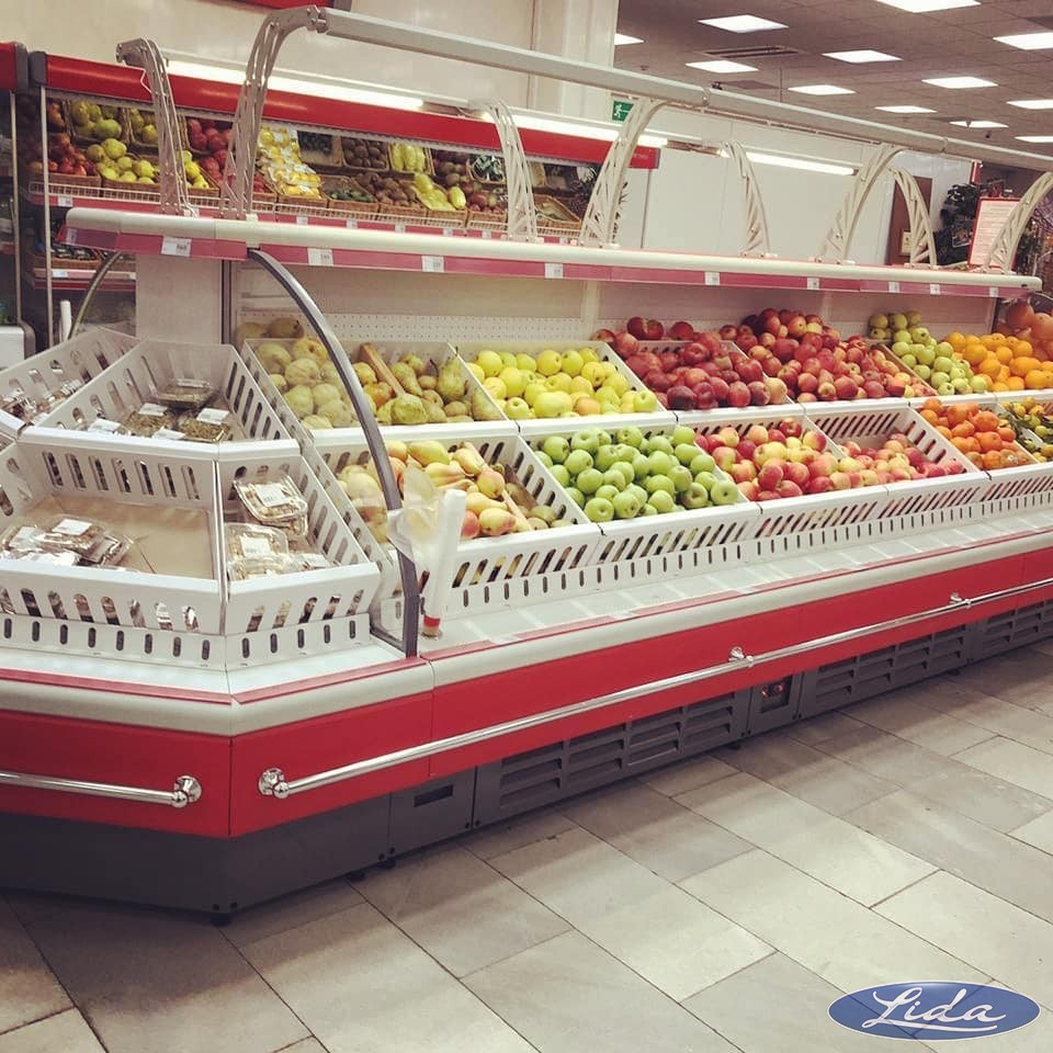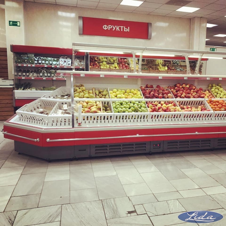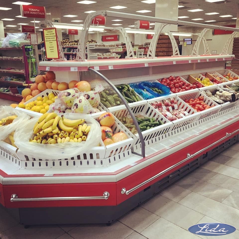 Овощные охлаждаемые острова на базе полувертикальных горок Lida-stella mini. Данные модули представлены на встроенном холоде