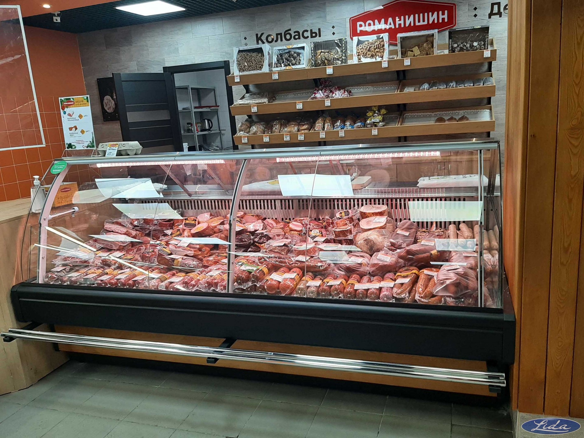 Витрины Lida Midi c зашивкой дерева на встроенном холоде