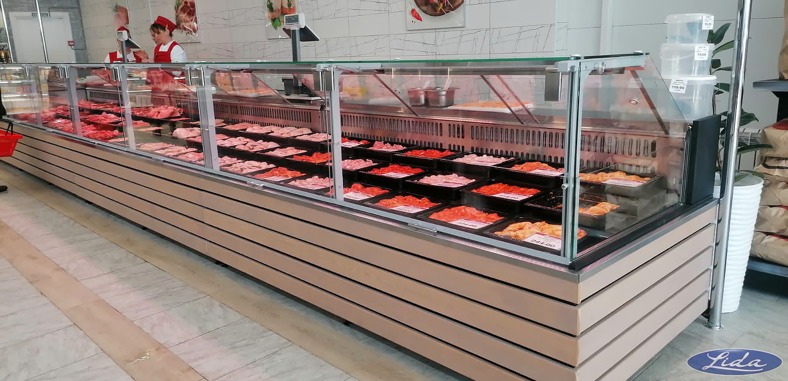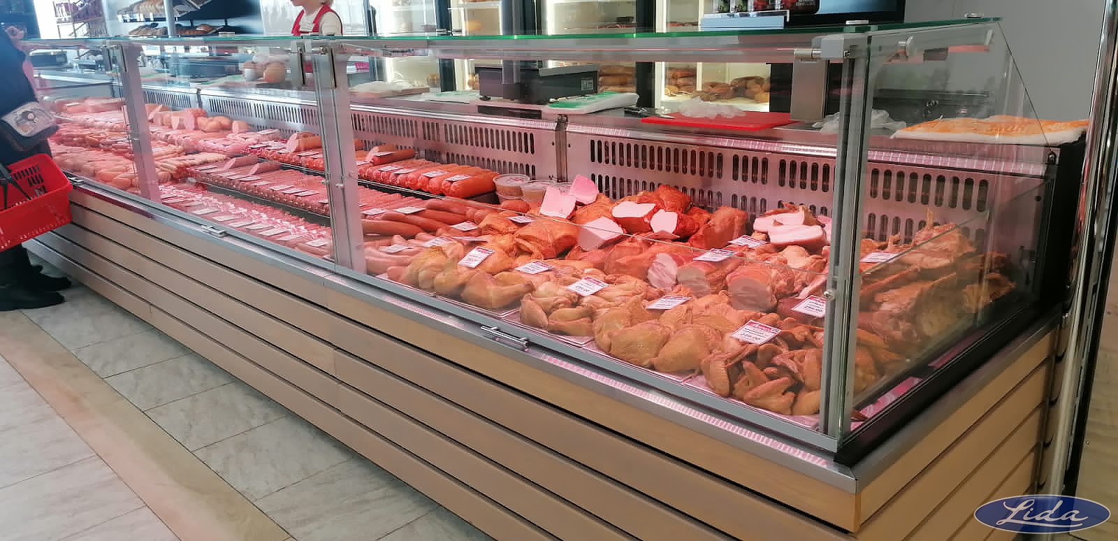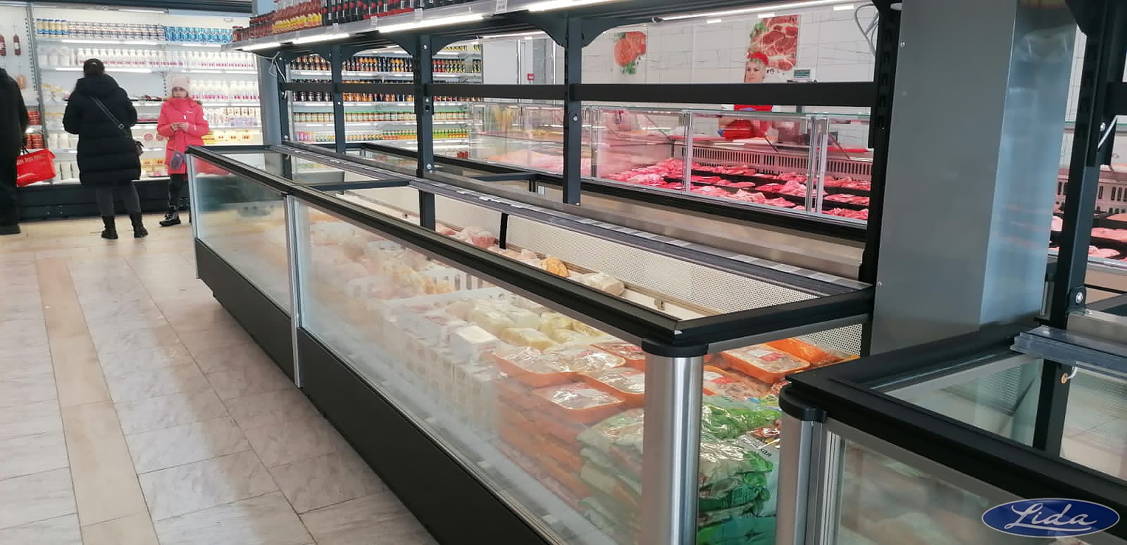 Все оборудование на выносном холоде, с индивидуальной зашивкой массивом дерева, изготовленной на заводе. Также для данного проекта были изготовлены холодильные агрегаты с частотным регулятором на базе компрессоров FRASCOLD.