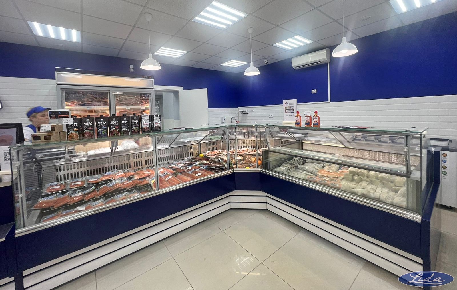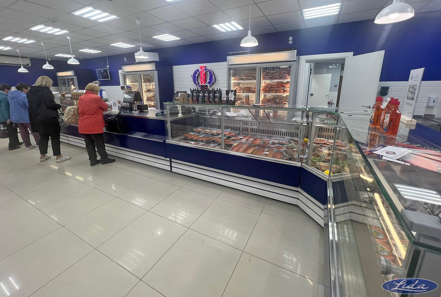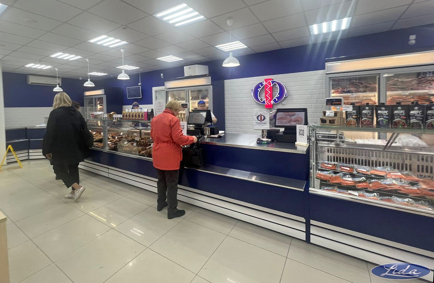 Наш завод участвовал в оснащении фирменного магазина под ключ: витрины на встроенном холоде LIDA-K, шкафы холодильные LIDA - в индивидуальном дизайне с зашивкой натуральным деревом.