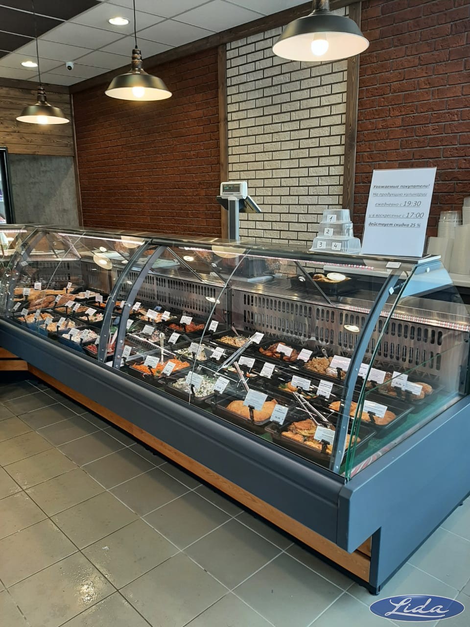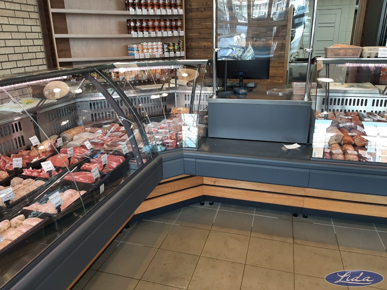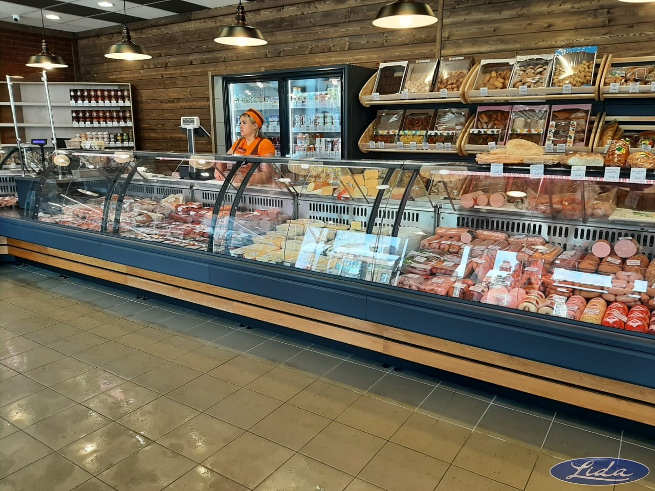 Открылся новый магазин популярной торговой сети в городе Смоленск. Витрины Lida-midi на выносном холоде с отделкой из массива дерева. Шкафы на встроенном холоде.