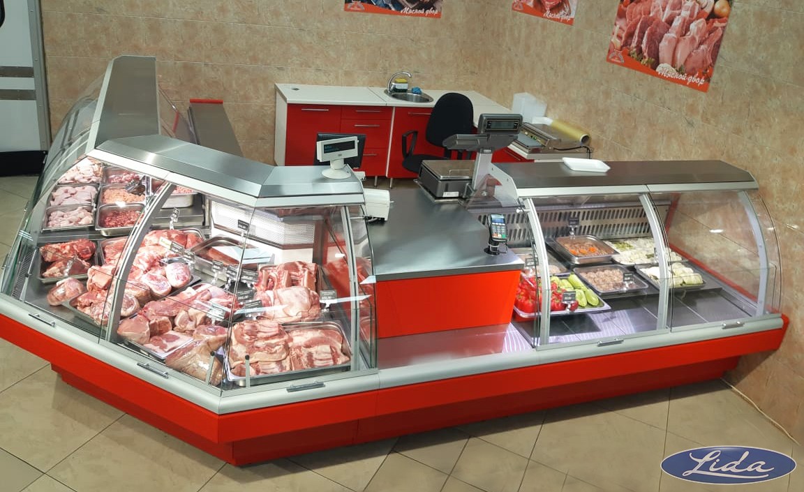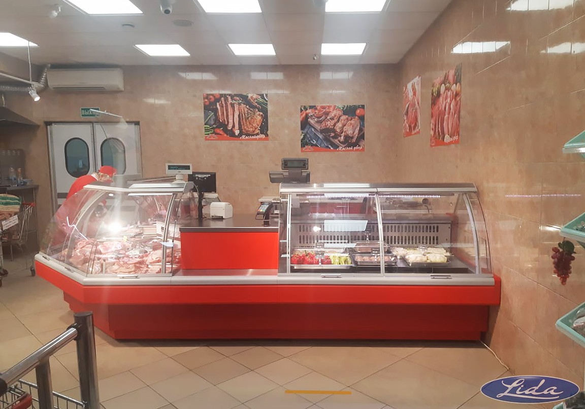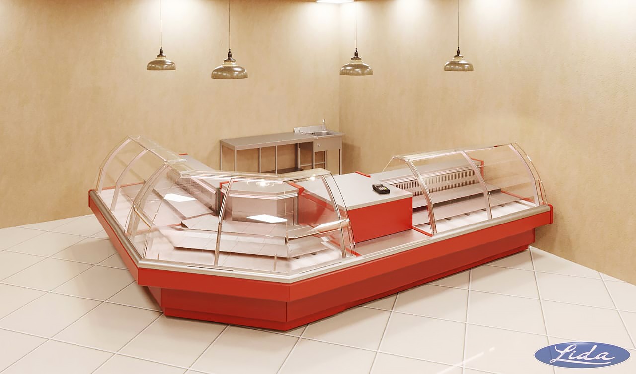 Нашим заводом была подготовлена визуализация проекта. Витрины Lida Maxi с подъемом стекла на гидролифтах и рабочее место изготовлены в едином дизайне, все модули оборудования стянуты в единую линию. Выносной холод.