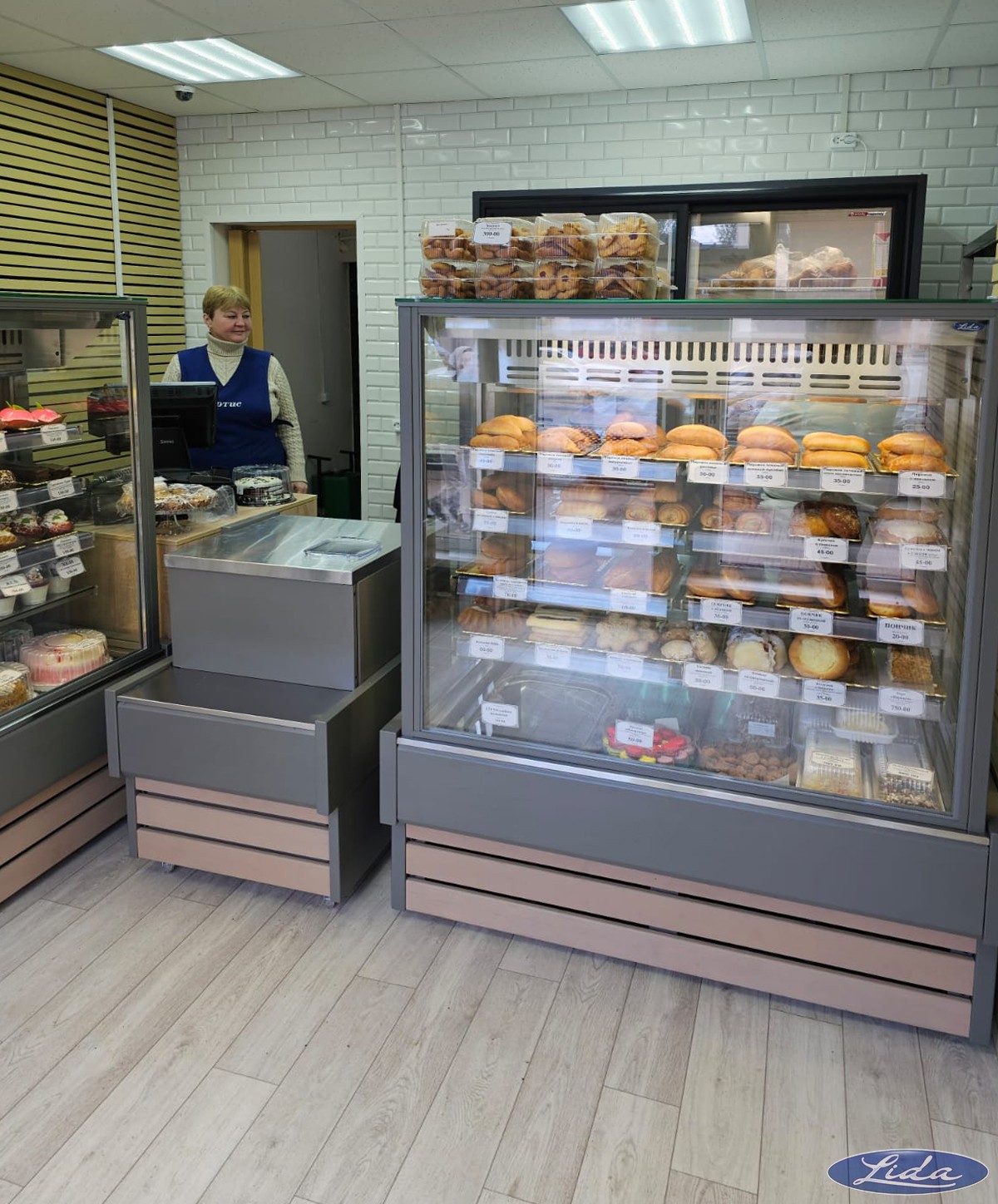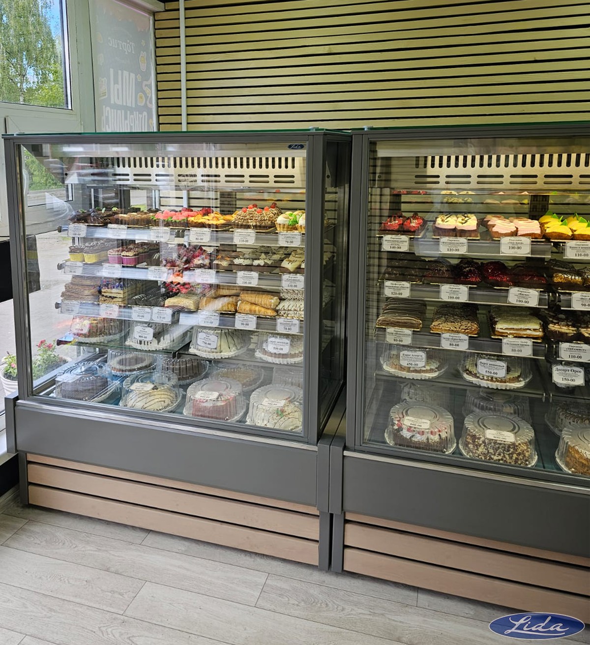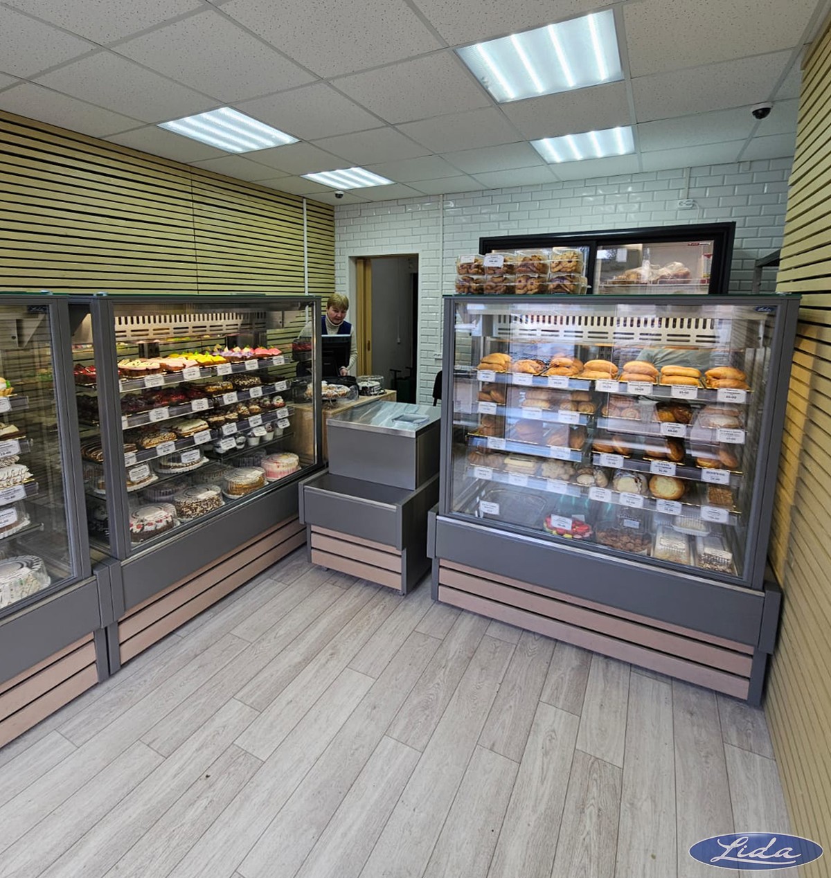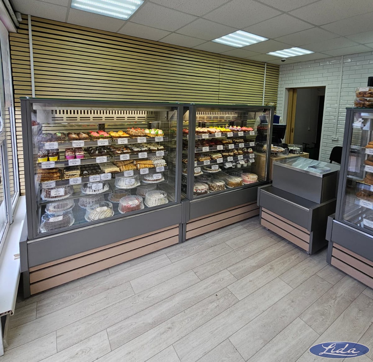На данном объекте установлены холодильные витрины LIDA-KANDI PREMIUM 1280*720*1550, четыре уровня выкладки, индивидуальная покраска оборудования и зашивка натуральным массивом дерева.