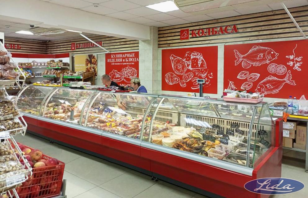 Холодильное оборудование было изготовлено под индивидуальный заказ: витрины LIDA-MIDI и гастрономические горки LIDA-STELLA.