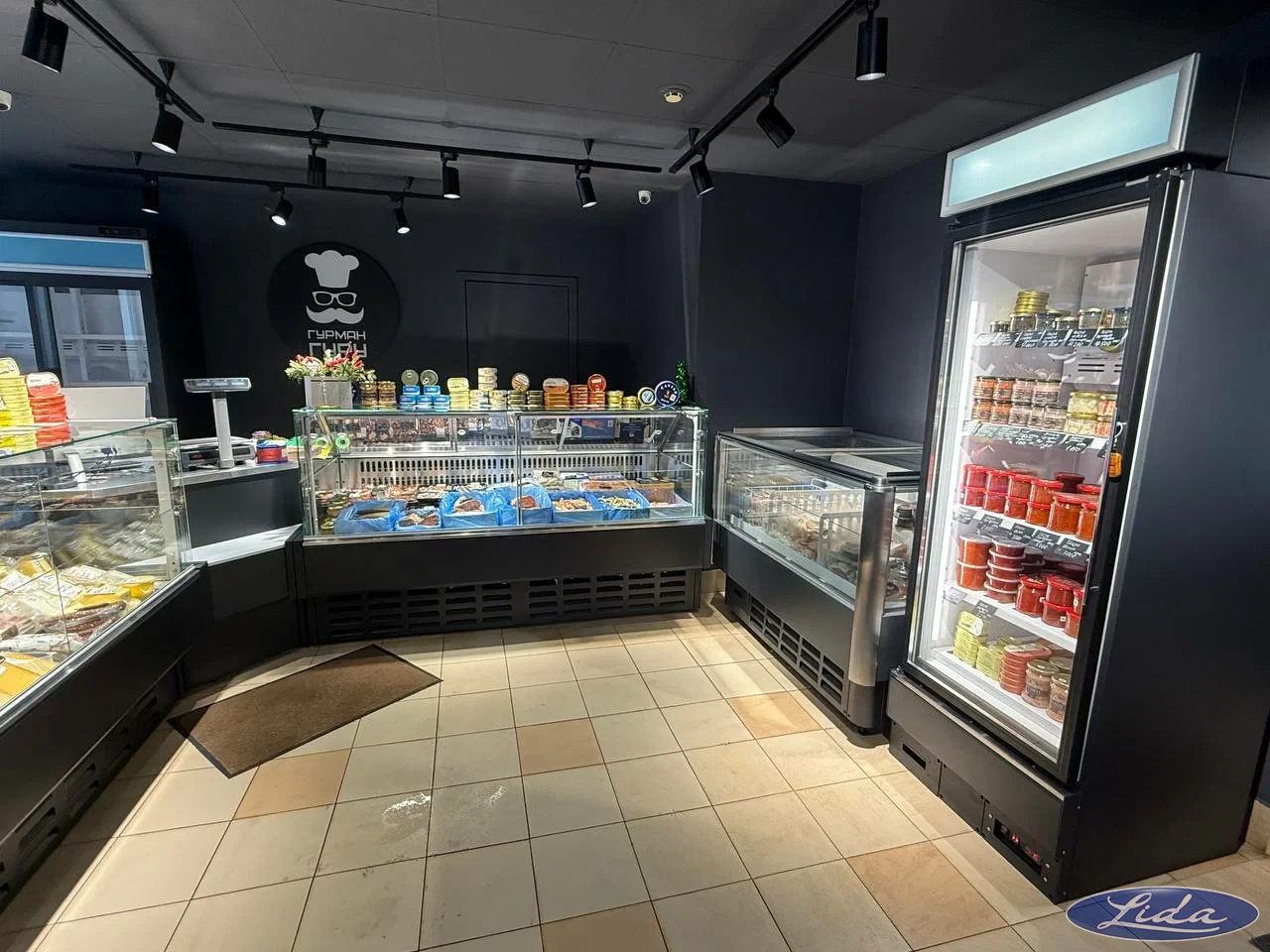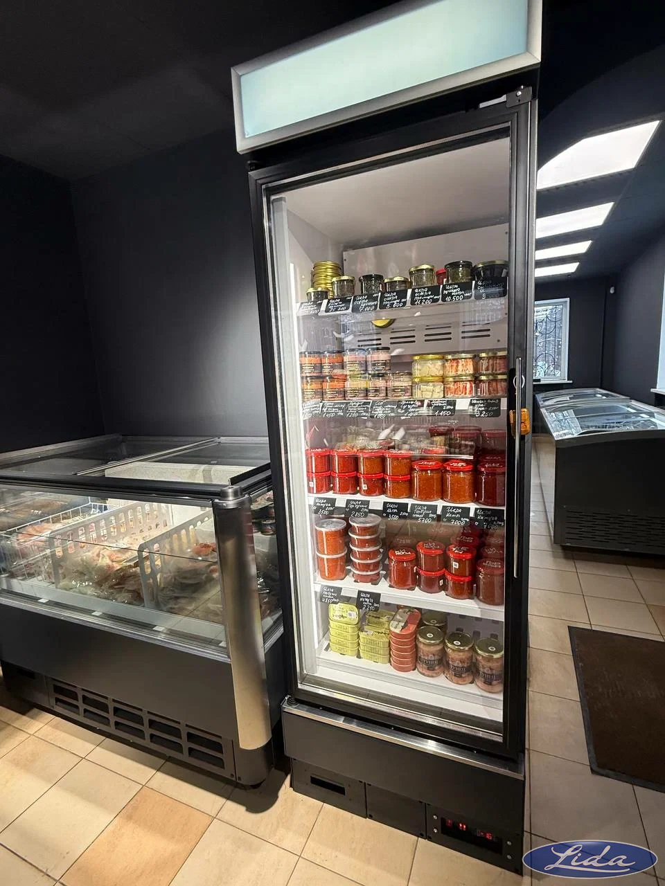 Установлено следующее оборудование: Витрины с температурным режимом (-5...0С) LIDA-K; Шкаф холодильный LIDA для икры, дверь с дистанционным пультом. Температурный режим (-5...0С).