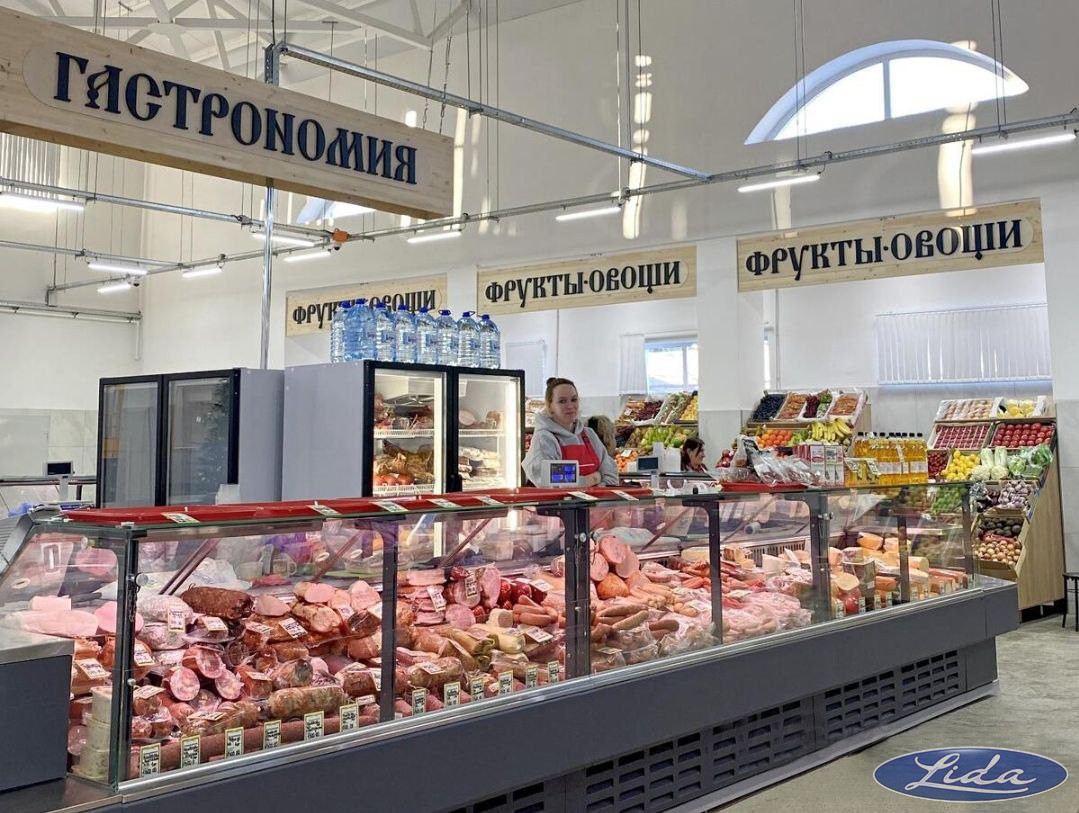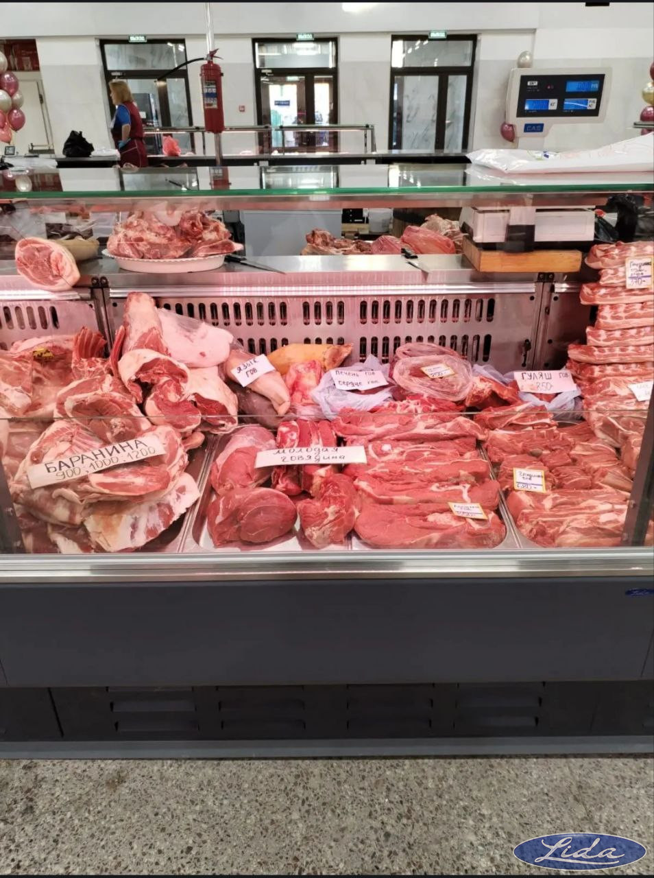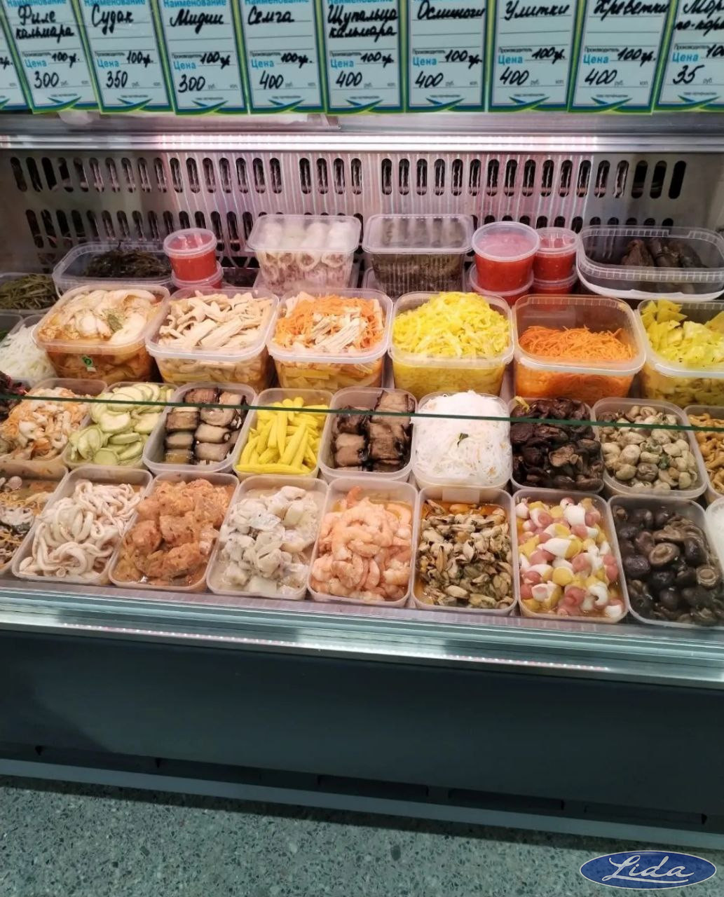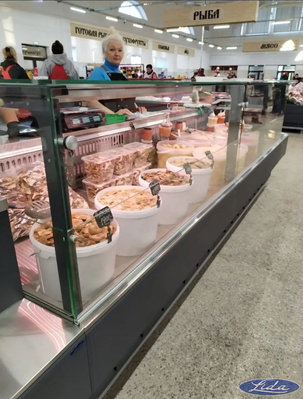 Здесь установлены витрины с прямым стеклом LIDA-K с универсальным и морозильным температурным режимом на встроенном холоде.