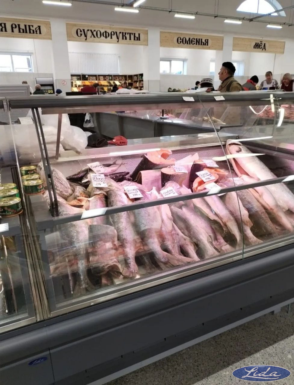 Мясные ряды, Колбасные изделия, Рыбные ряды, Молоко и сыр, Соления и салаты.