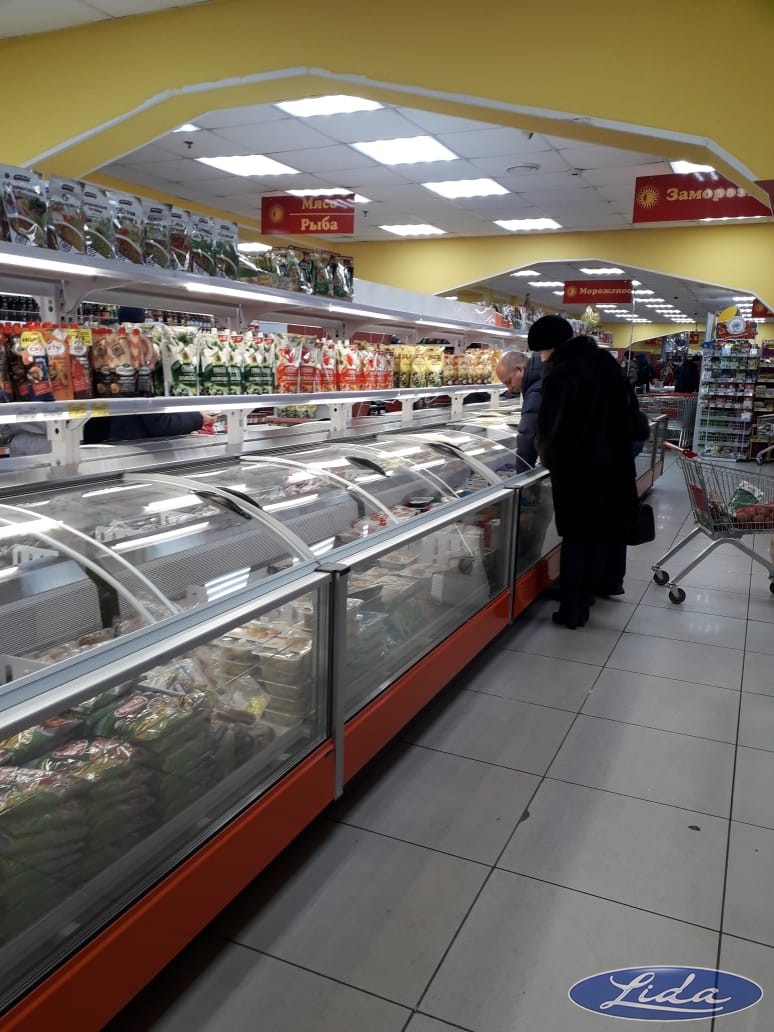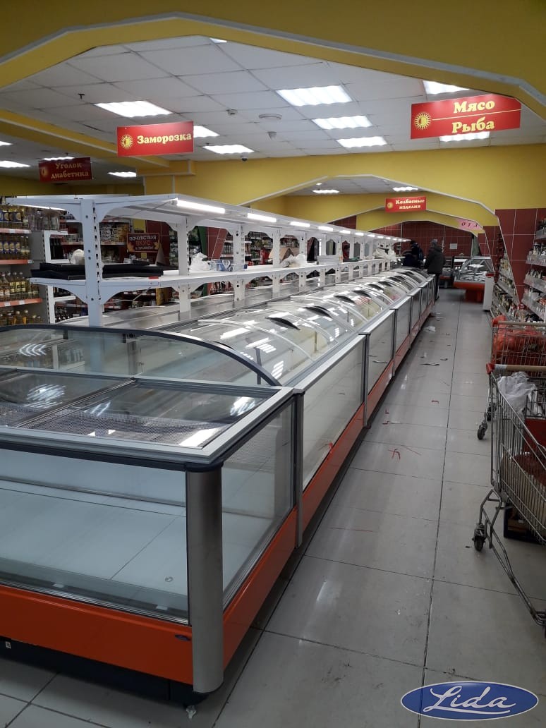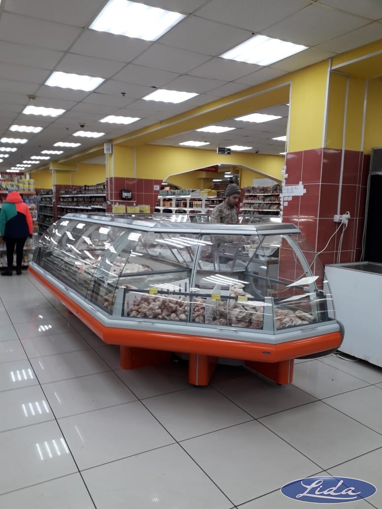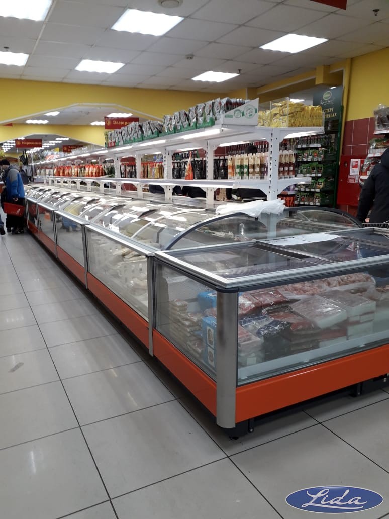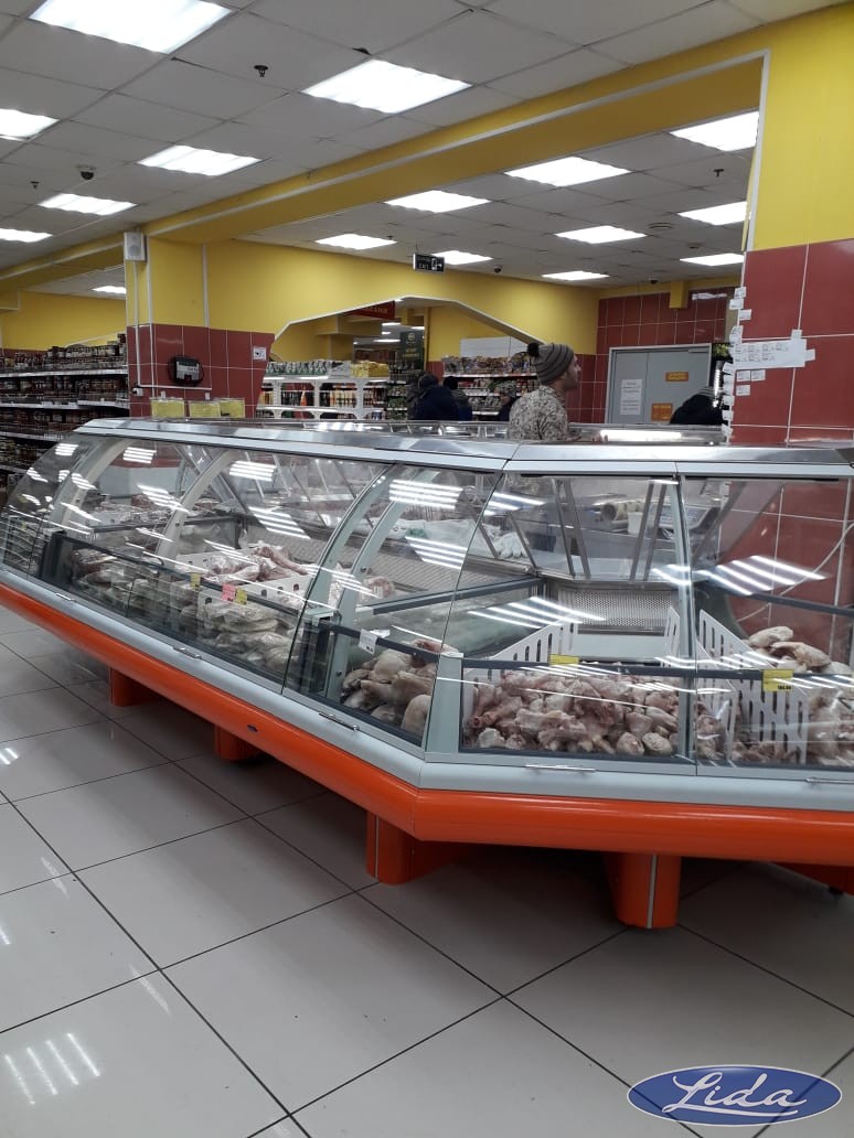 Бонеты с крышками на выносном холоде, витрины с гнутым стеклом - BRIZ. Угол внешний у витрин до -18С.☝️. Оборудование находиться в Норильске.