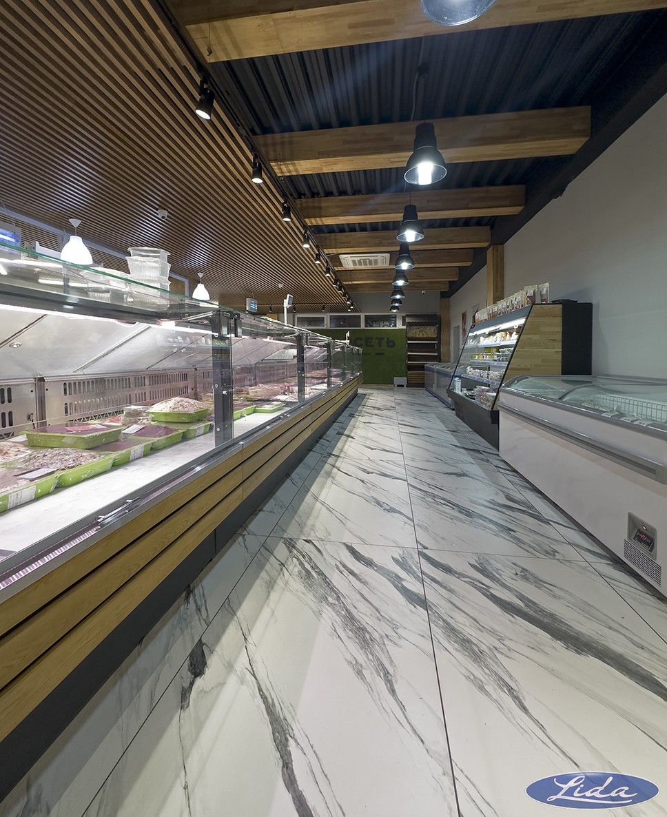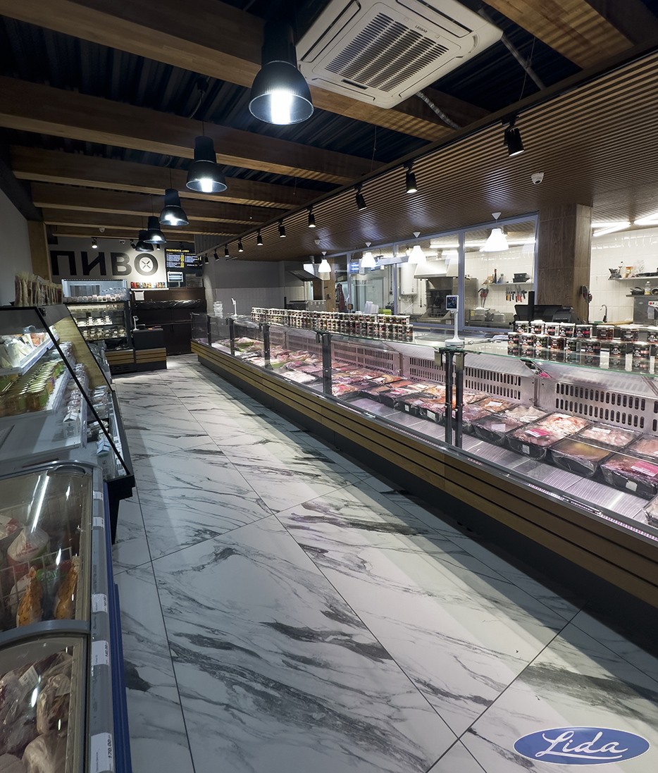 Предварительно были подготовлены 3D-визуализации. Для оснащения выбраны: витрины Lida KUB с выкладкой 950мм; гори охлаждаемые Lida Stella Mini; витрина гастрономическая Lida Premium.